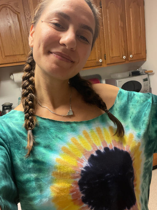 Bought this to replace an old tshirt that is tie-dyed purple with the same graphic on the front. I have worn that shirt for years and years, and it is falling apart. Imagine my delight to see this one on your page. Thank you ever so much! I look forward to wearing it for many more years. Love, light and laughter…Cheryl