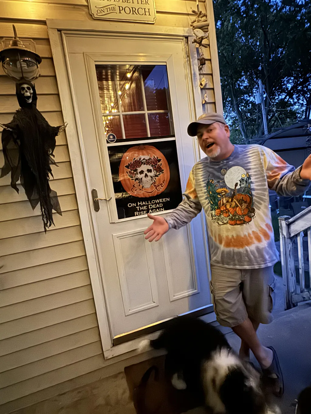 🍁 Psychedelic Fall Scene – Features a trippy skeleton guitarist under a harvest moon in a pumpkin patch