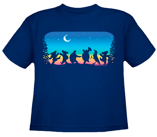 This officially licensed Grateful Dead youth t-shirt captures the magic of the "Moondance" with a silhouette of the iconic Dancing Bears and Terrapins under a whimsical setting moon.