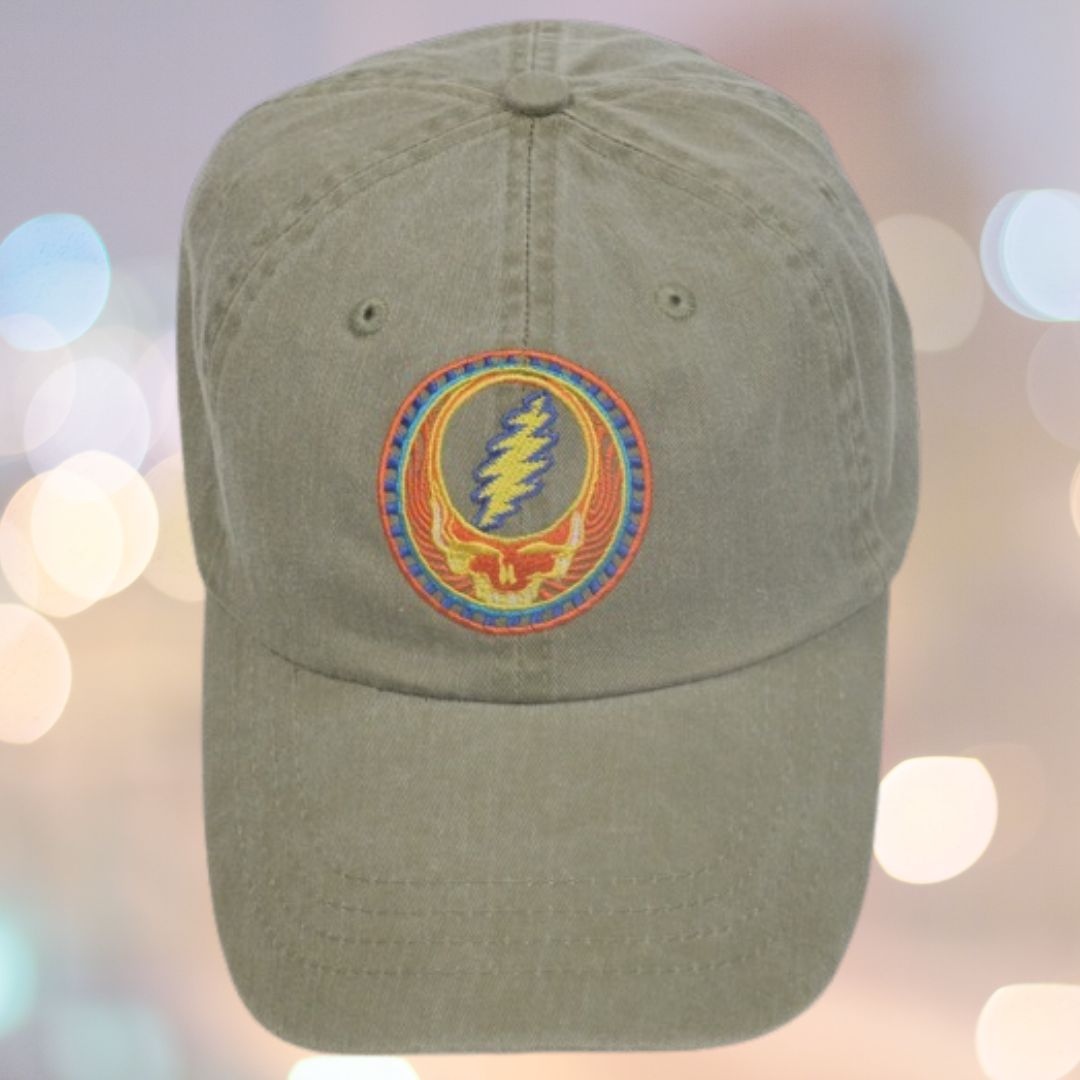 Gear up for a head-turning trip with the officially licensed Grateful Dead Orange Sunshine Stealie Embroidered Ball Cap! This vibrant cap features the iconic Steal Your Face emblem bathed in the warm glow of an orange sunshine, all meticulously stitched with a high thread count for that extra pop.
