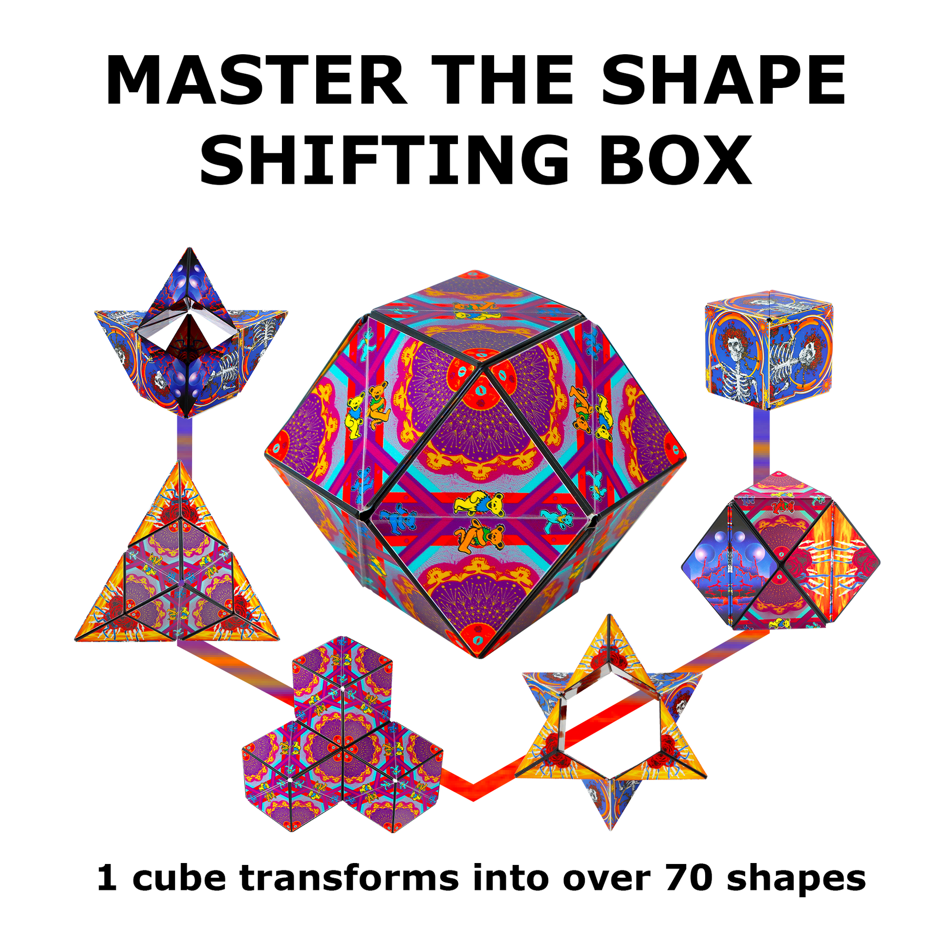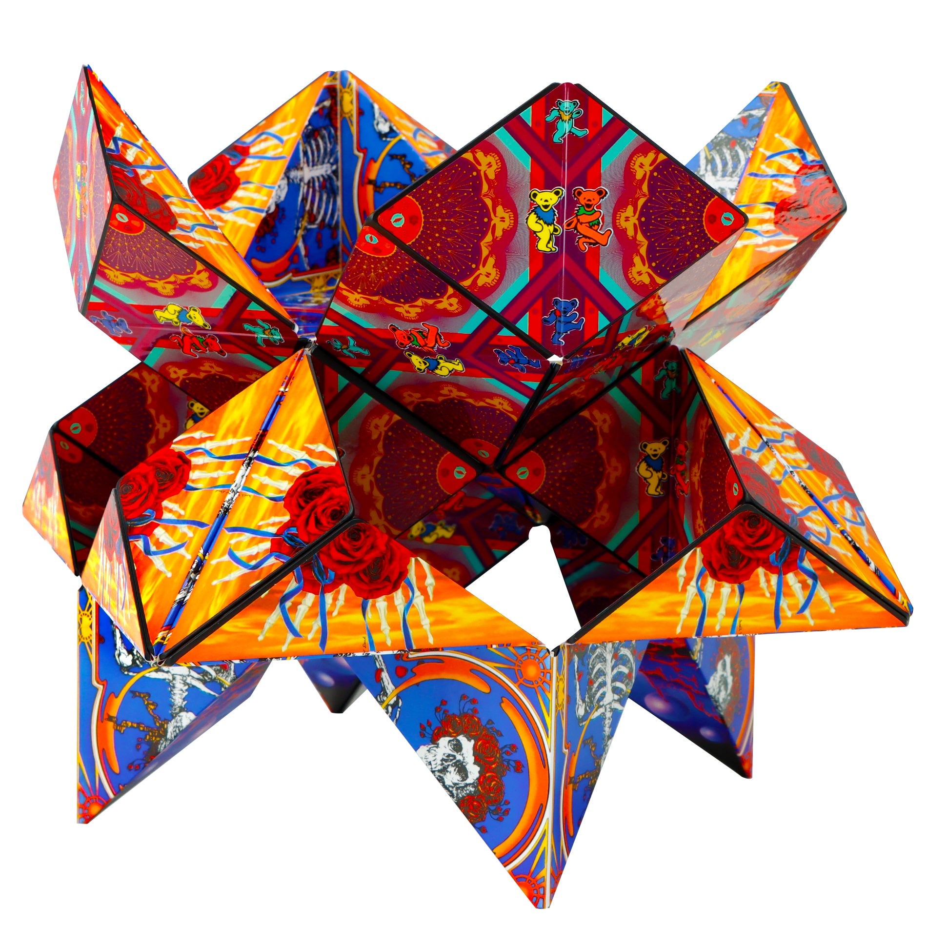 The Grateful Dead Skull and Roses Shashibo brings the iconic artwork to life in a magnetic cube that never stays still. Flip it, fold it, and shape-shift your way through an endless garden of geometry.