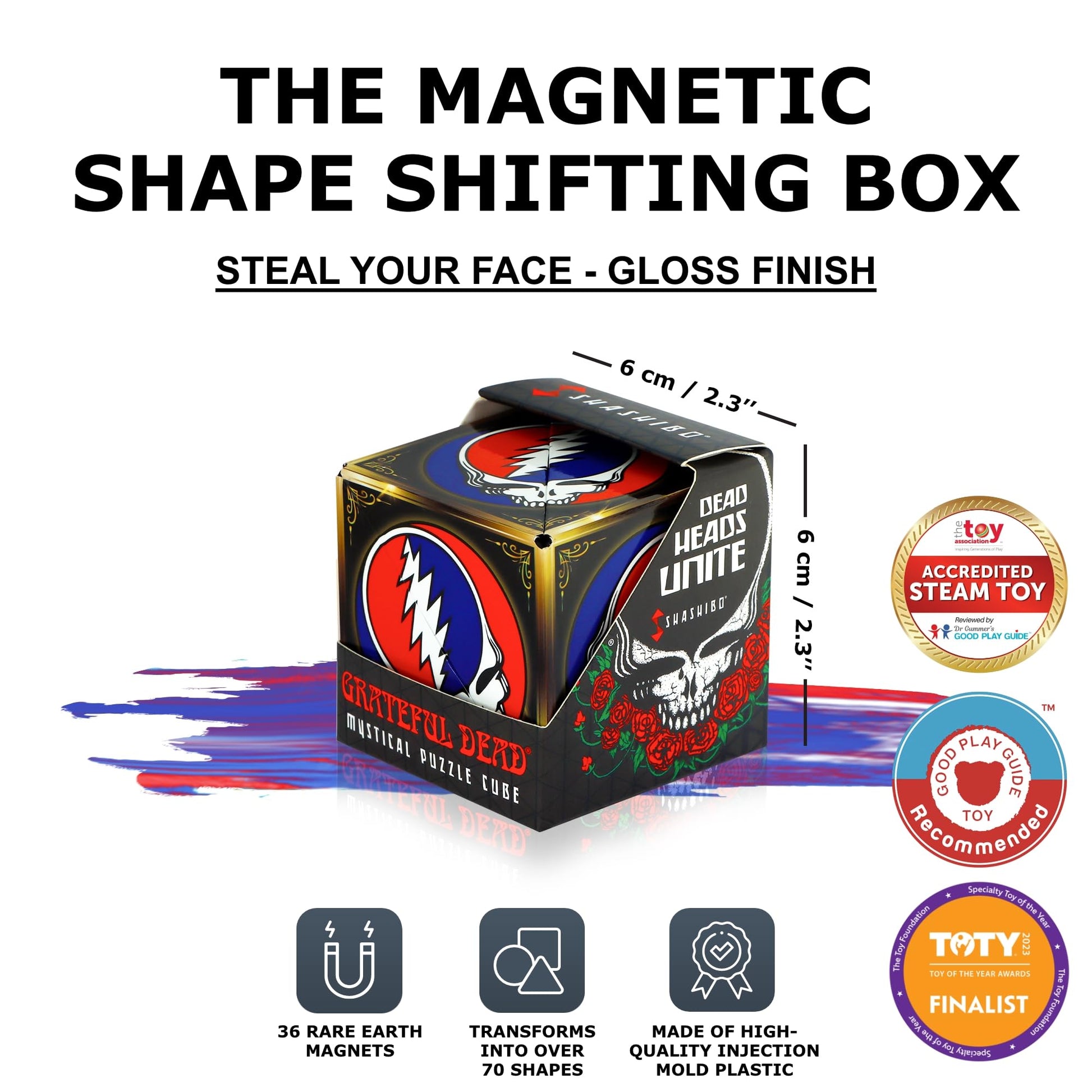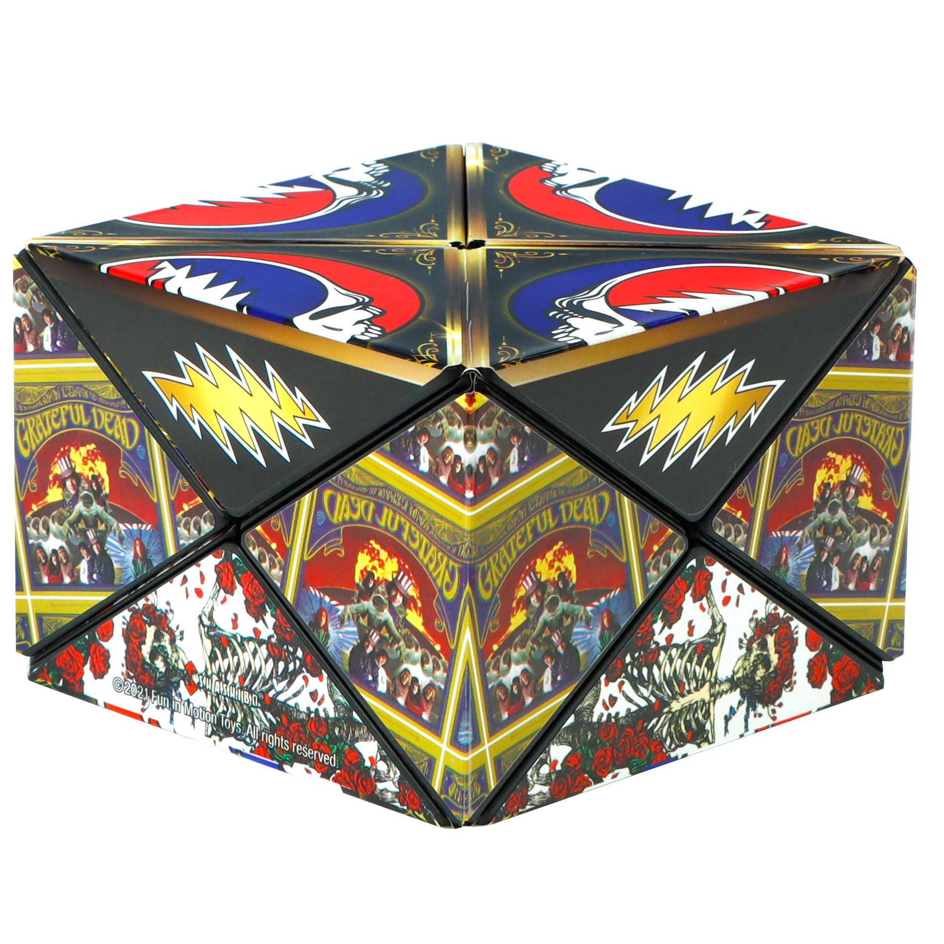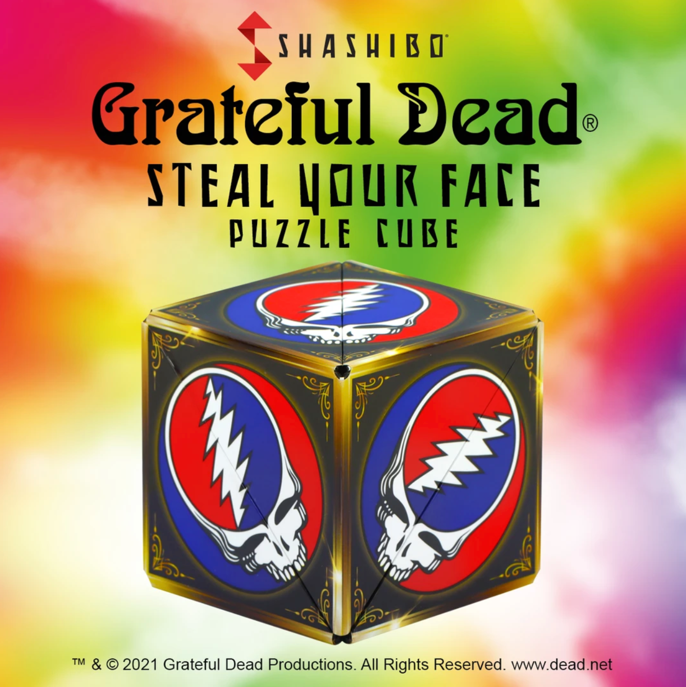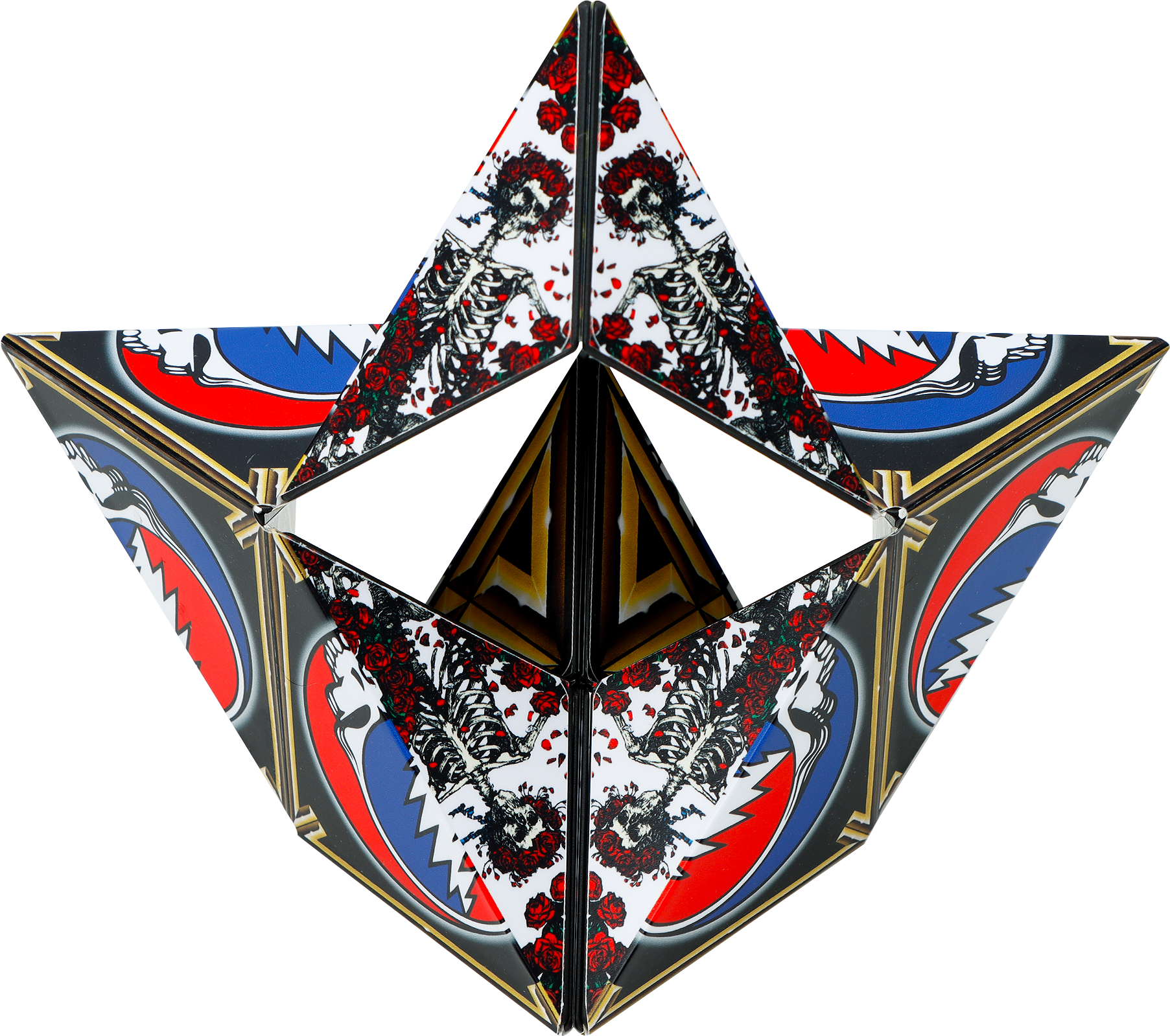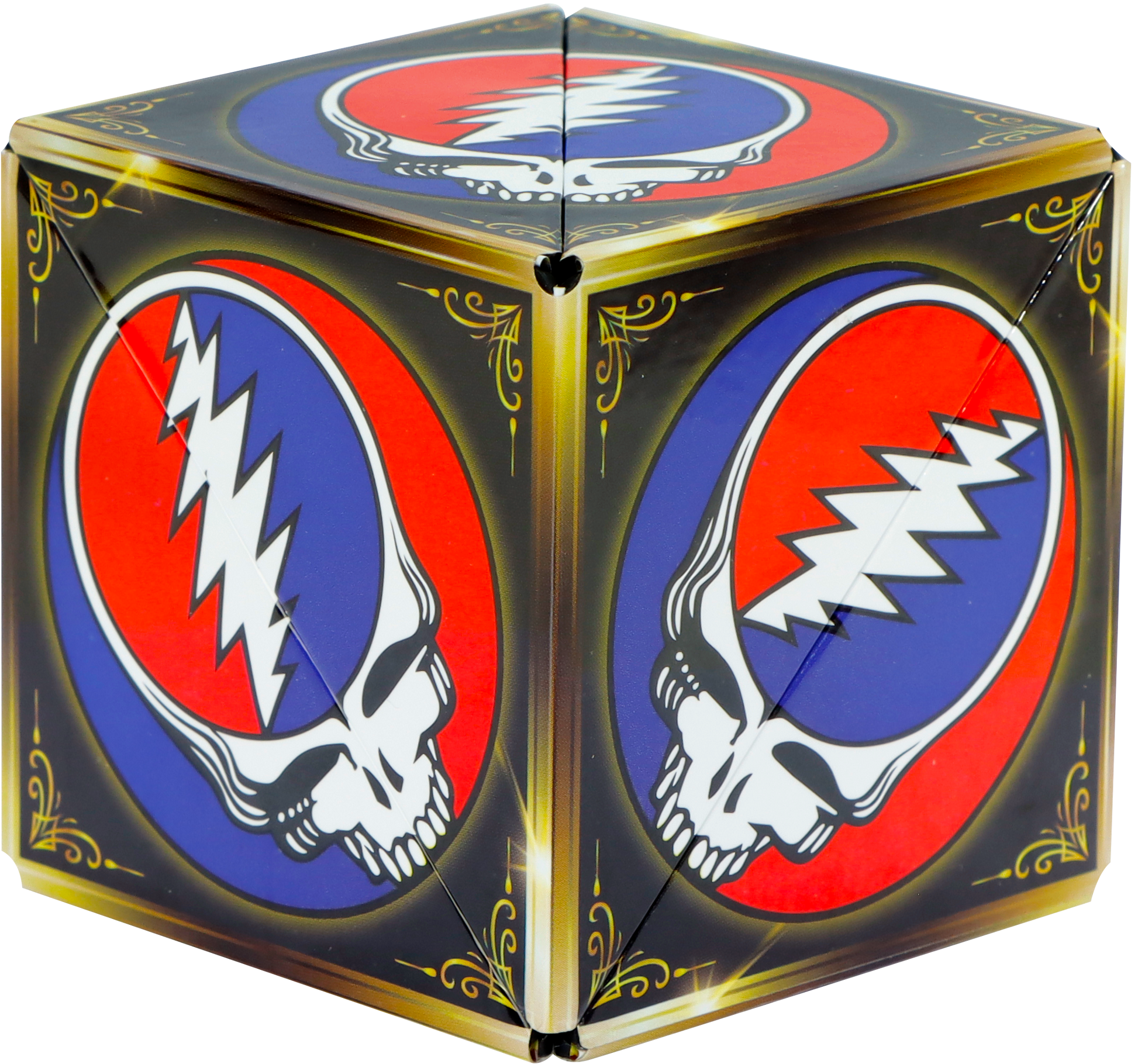 The Grateful Dead Steal Your Face Shashibo is a shape-shifting magnetic cube that brings the iconic SYF logo into a whole new dimension. Every twist is a nod to the mind-bending journey that started it all.